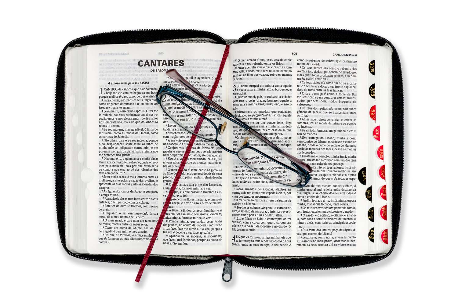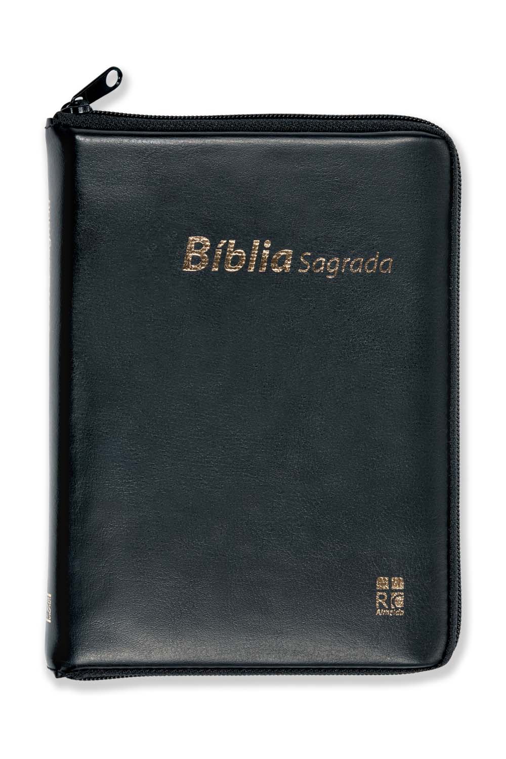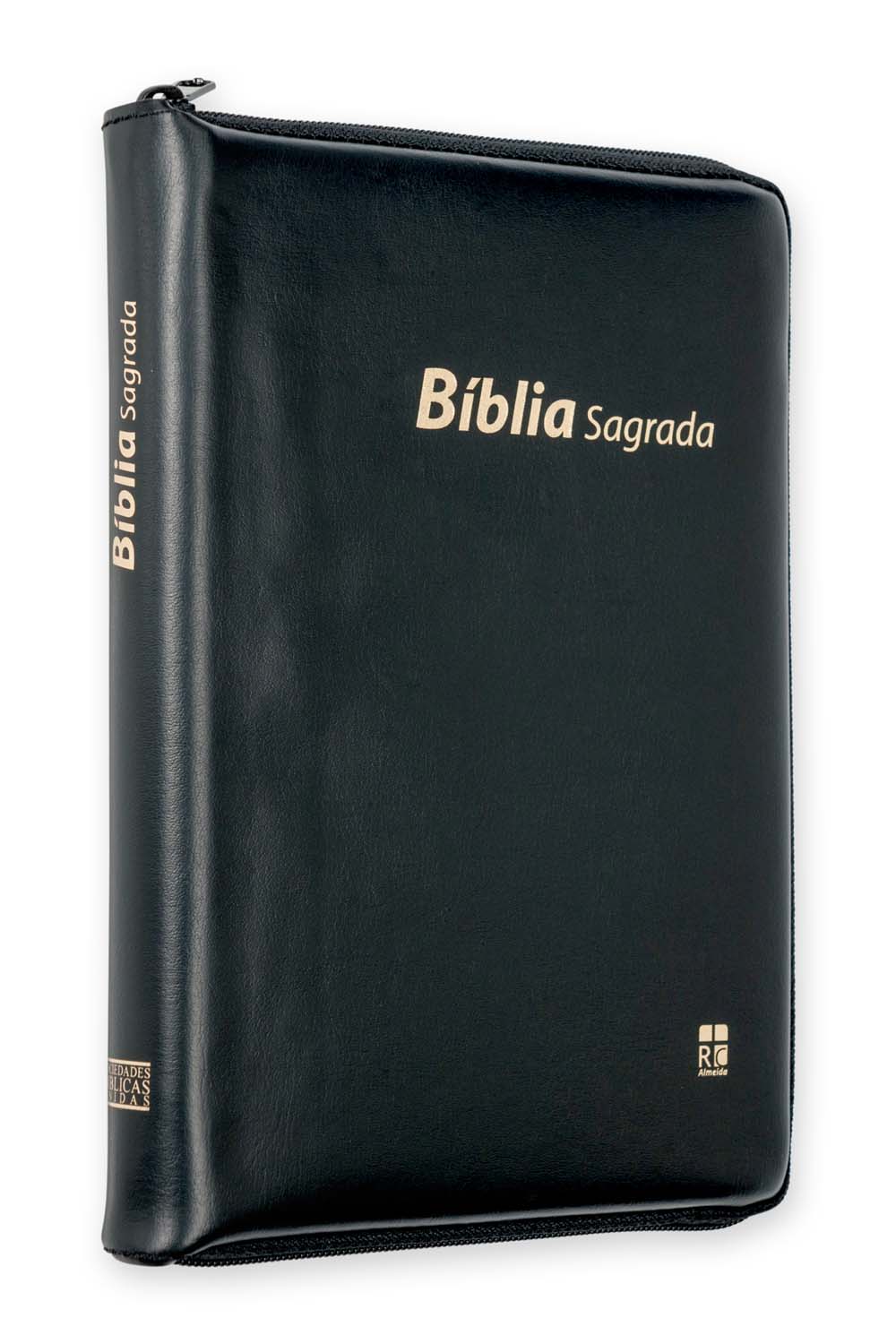 Com capa de vinil maleável preta com fecho, índice digital, beiras brancas e tradução de Almeida Revista e Corrigida, esta bíblia de formato médio torna-se prática de transporte e é muito resistente.
